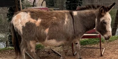 In the spring of 2023, Animal Control reached out to DHHS regarding a runaway donkey. Elle Mae was initially housed at a horse rescue, but when the authorities shut down the rescue, she was left behind.