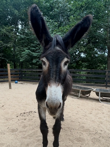 Charlie is a 4-year-old mammoth donkey, and Amos is a 6-year-old standard donkey. Both are full of personality—gentle, affectionate, and always eager for a scratch behind the ears. They’re a joy to everyone who meets them, and we’re honored to be their forever home.